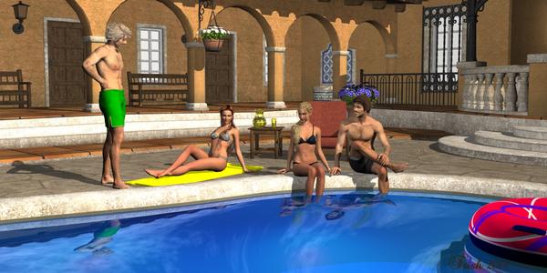 Great pool scene, the water looks awesome. I haven't worked with water surfaces too much yet. Still working on lighting and DOF ( as seen in my new studio posting). Today I am tackling Bryce again, just getting it reinstalled at the moment.