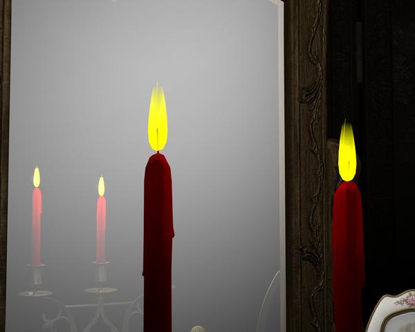 Not really a candle flame per say just a better ....more real reflection in the mirror .....like what Miss B. had going on but with only darkness...If I could speak better maybe it would be easy - ier.. or be able to spell.....LOL ......changed the color ....