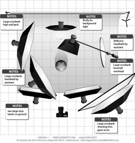 coolness. I had seen a light setup that looked like a compass with eight lights, I couldn't find that diagram again today. Yet another example of breaking the three-point rules.