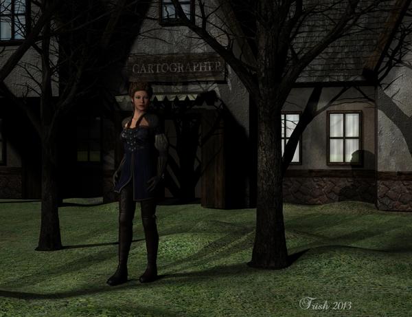 yes I am trying to figure out what kind of char. he is maybe a wizards helper......meanwhile back at the ranch we have Vicki leaping to the next cliff....haven't added the trees yet...still a WIP