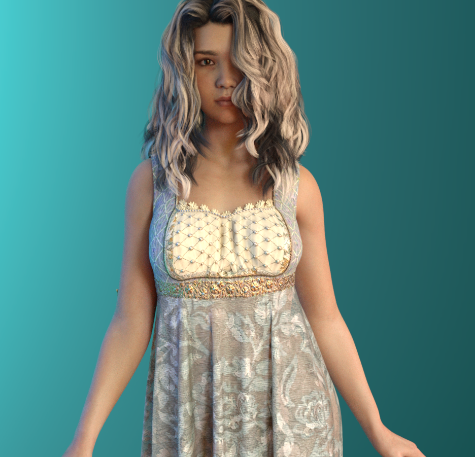 Oh that's really pretty! :) Such a cute character and dress! Lovely render!