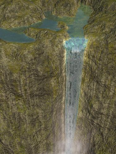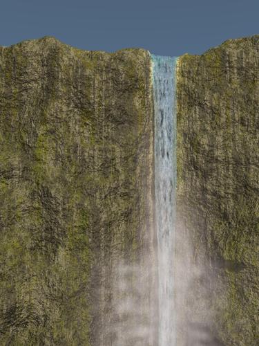 The waterfall is a base mesh, in the shape of the fall. No details, since it will be hidden.