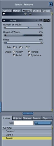 A trick 3dage gave me some time ago using the ocean primitive - should work equally well on an animated terrain.