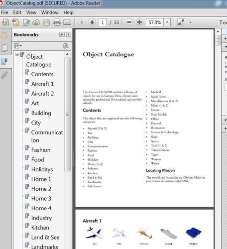 I found this PDF file (attached) in carrara folder of my new 8.5 purchase, (I'm a first time Carrara user). The file is an object catalog describing content that I can't find anywhere in the Carrara folder. Obviously this help file is a relic of an earlier version of Carrara, but does anyone know if the content referred to in the PDF catalog is still bundled with Carrara 8.5 or available online somehow?