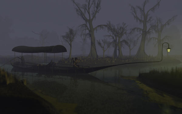 The day turned into evening, and the evening slowly turned into night. The chill in the air, the sounds from the darkness and from the mist sent shivers down the spines of our brave adventurers. Lomund, who had been padding the boat all day was weary and tired and he called Miriel to look for some place to camp for the night, They knew the journey through the marshes would take two days, two long days.