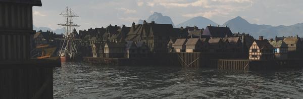 In the evening, at the boat lifts at the end of the Long Lake, Gideons Stairs, a lonely river boat silently approaches the dock. It's late, and the boat lift wont open until tomorrow, but a sturdy dwarf climbs out of the river boat, turns his head to the boatsman saying "You stay here, be ready to lift her down. I'll get you some food for you, I meet you on the other side.".