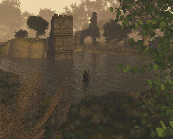 A chiming sound was heard in the distance, then they heard it again. They looked around and saw a lake with dark water, in front of an old tower, where the top had fallen off. There was the sound again, they all felt uneasy, but they looked around to try find some traces of the missing dwarves, now when they had a fresh trial to follow. Suddenly they saw Lomund, walking straight to the tower, already knee deep in the black water.
