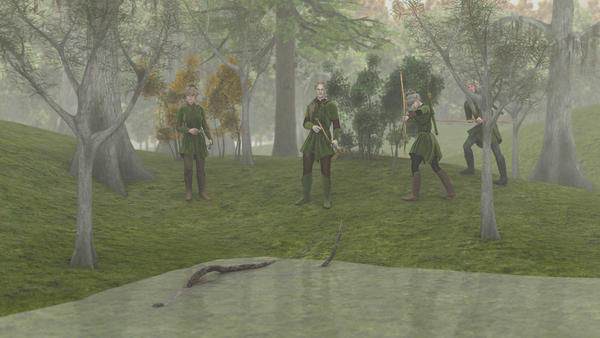 The elven ranger party was led by an elf named Gellion. Those who knew their history, particular Elven history, knew that he worked until five years ago as the Kings cup, for King Thranduil himself, being his personal butler. But an incident about five years ago, when twelve dwarves and a hobbit escaped after Gellion had been drinking a little too much wine made him loose that honorable position. Now he leads a group of Borderland rangers, scouting the borders of the Elven kingdom of the woods.