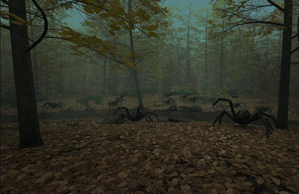 Meanwhile Miriel, Gorm and Eirik fight a wild battle against the huge spiders, and they finally get hold of Baldor, Gorm grabs him and tosses him on his shoulder and begins to rush back. The others cover the retreat. The pass the stream and someone says that spiders cannot cross water, but the spiders just climbed the trees.