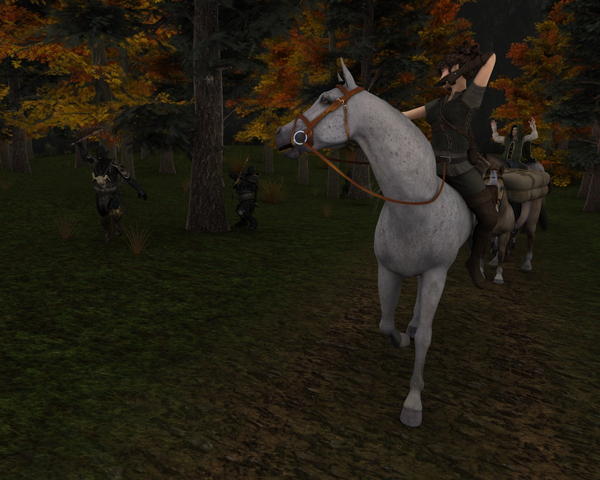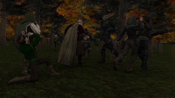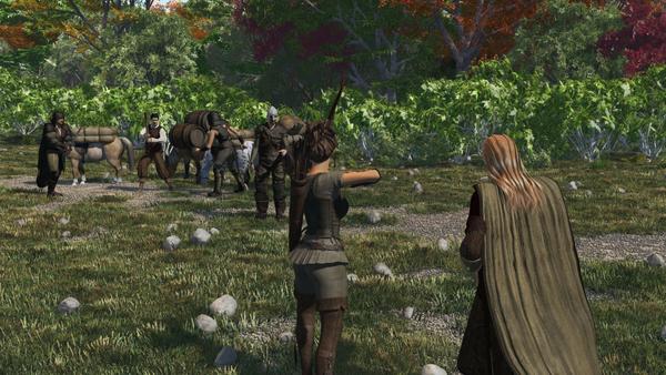 Eirik shouted "What's going on here?", where Miriel was a little tougher and she put an arrow in the string shouted "Drop your weapons!".