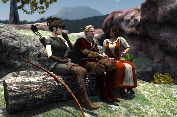 One of the armed men, named Kelmund, turned and faced Eirik and Miriel and shouted back "Get out of here, this is none of your business.". Miriel aimed a little lower and released the arrow and it hit the ground one inch in front of Kelmunds foot. Kelmund looked up and shouted to his friends, "She's an elf!", and Miriel just calmy replied with another arrow on the string "I said drop your weapons!".