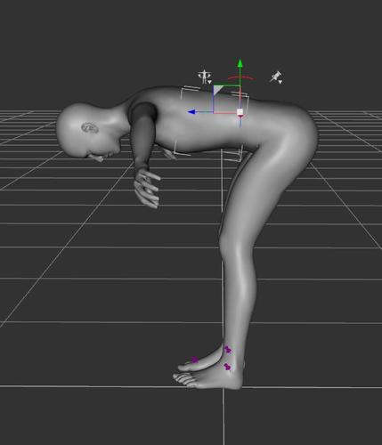 . Figure to the right is the standard Genesis Female and to the left it is in the position I want to achieve. The only way I am able to do it is to bend legs forward and then rotate the whole figure to stand it on its feet. But that means that I have moved the figure out of its original place and the "referral point" (sorry, I do not know the right term for it) is now placed out of the figure (as seen in the picture).