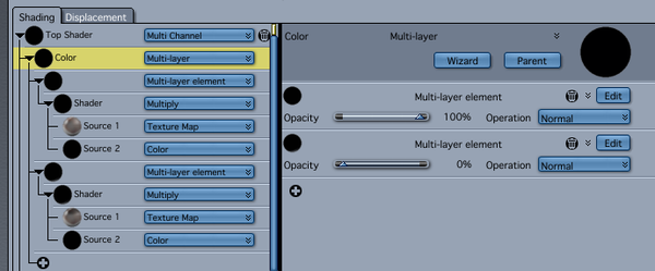 The color element is two layers, and each layer is the product of a texture map and a color, in this case #000000. And you know what anything multiplied by zero is.