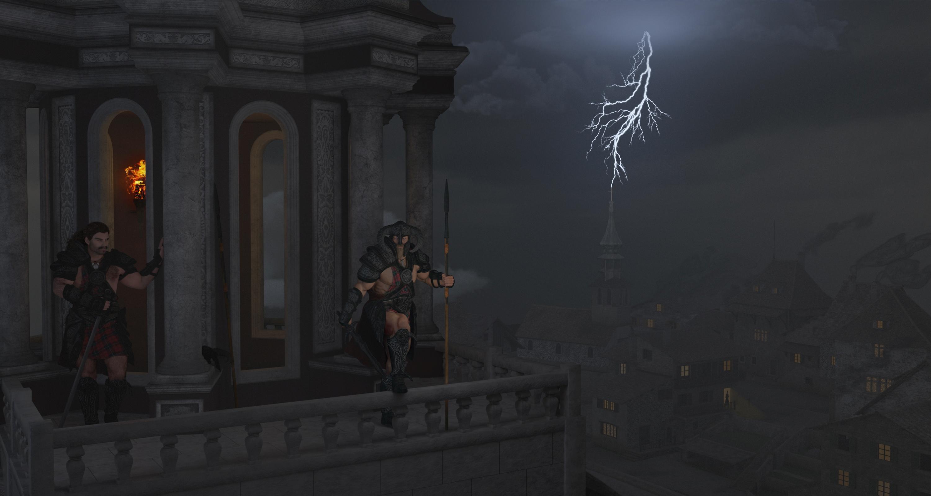 I'm really on the fence about entering this image here. It started as an entry for the PC Render Contest, using Eirian and the Miellyn Outfit, but once I had the background "done," I realized what I had planned for Eirian didn't fit the scene. So I replaced her with two hunky barbarian types. I'm still going to enter the signed version in the other contest, though. Anyway, it's an entry for now.