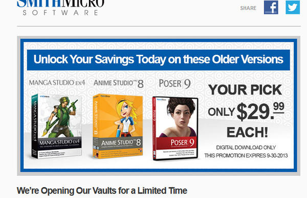 They are also selling older version of Anime Studio and Manga Studio fo the same price, or all three for $50.
