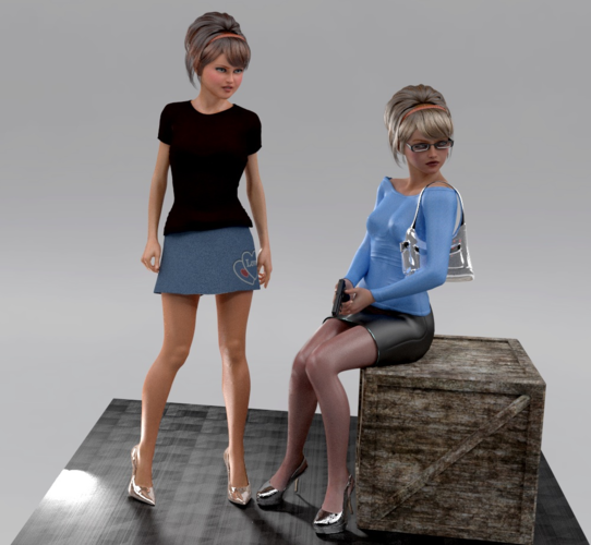 The materials in particular are the toughest nuts. I don't quite know how one would do animations given the tweaking I've had to do to several surfaces in just one transfer. For example, take the render below. I had to adjust the glasses to a glass material, I had to reduce the gloss on the stockings and addded an anisotropic to blur it a little more like nylon does. Not hard but lots of individual surface domains to tweak. So if I was doing it frame by frame, wow. I think I ought to read the manual fully to see all the things I'm not doing right! But for a first pass render I'm impressed with it. Thanks again!