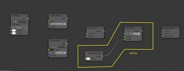 also the Opacity strength of the surface/materials will be added to the material node trees as a transparency shader +mix shader
