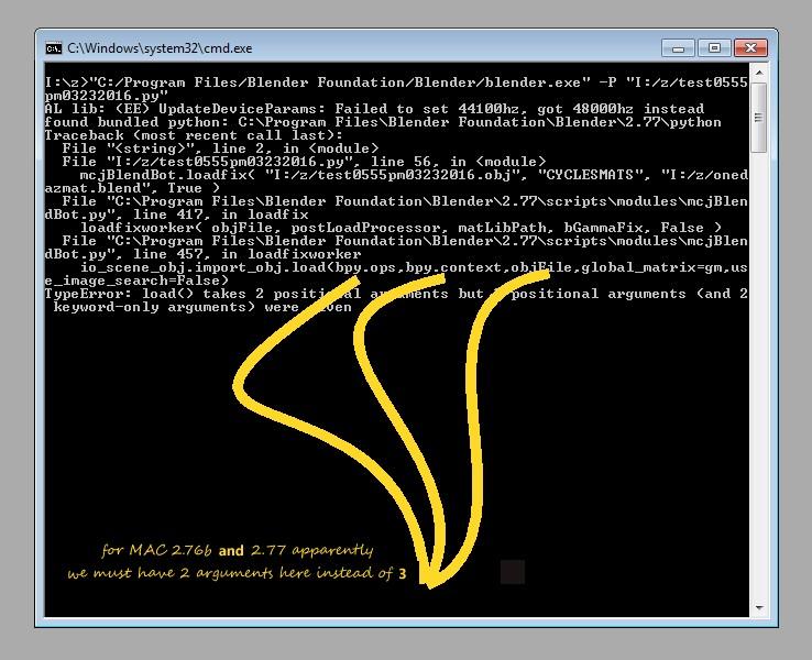 There was a substantial change in the Blender 2.77 addon used by mcjBlendBot to load .obj/.mtl scene files