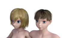@sadastiltskin - I'm not great at dialspinning to try to match character, but I gave it a shot. I started with Luca and added other characters and morphs, and also used Posey texture. It could still use quite a bit of improvement, but I do think someone with more talent could turn Luca into a great counterpart for Posey. On the left is Posey, on the right, Luca. I think he needs his nose lengthened a bit and maybe his face shape needs to be changed a bit more, and he needs his chin "Sakura-ized" (sharpened). The eyes could use more enlarging, but I kept breaking them when I tried to go much farther.
