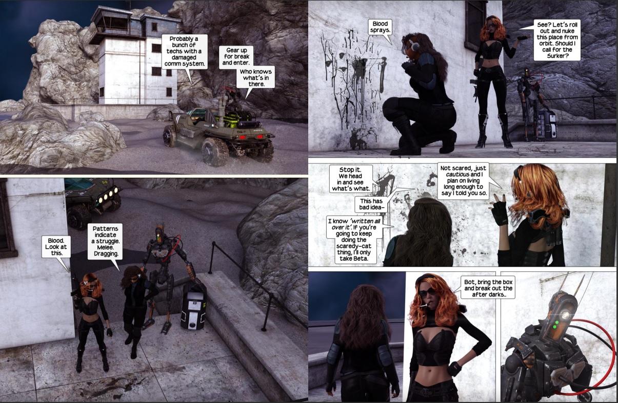 I saw these comicbook pages in the Force Six Annihilators series on issue by Drew Spence. http://issuu.com/producersedge/docs/halloween_2017_parti?e=3301537/54665158