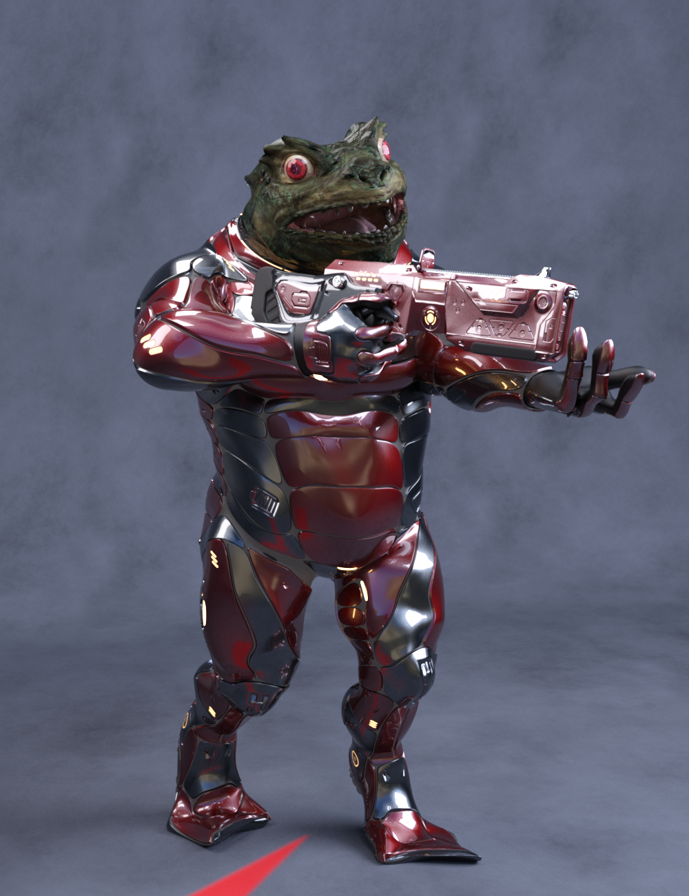 The elements in the image are pretty much out of the box (aside from the custom character body), but there is a 40k word in-progress story that inspried the render.