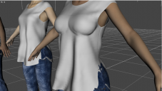 And yeah, the Timeline is needed to make the clothes fit the morphed figure. If you were using Victoria 8 or the base Genesis 8 Female body, you could skip the business with the timeline and the Simulation settings, just apply the dForce modifier and hit Simulate. But since Elizabeth and Rebekah have custom scultped figures, the t-shirt's mesh doesn't really know what to do with it. Just hitting Simulate will leave the underside of the breasts misshaped. I'm imagining that the software takes the shape of the shirt at the start of the timeline and then uses the physics engine to determine the drape of cloth over the course of the simulation. Since the shirt looks nice without the character morph, dForce thinks that's how its supposed to look and rolls forward, even as the timeline slowly shifts your character to the full morph you want.
