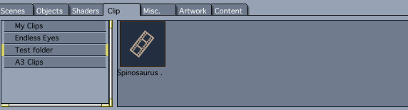 You should now see a clip in the Clips palette. Open the Clip browser and drag and drop the cip into it to save it. Close your scene.