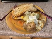 My dinner was a baked potato and a sandwich I heated up in the toaster oven.  Dollar tree has nice sour cream, but I didn't see any butter!