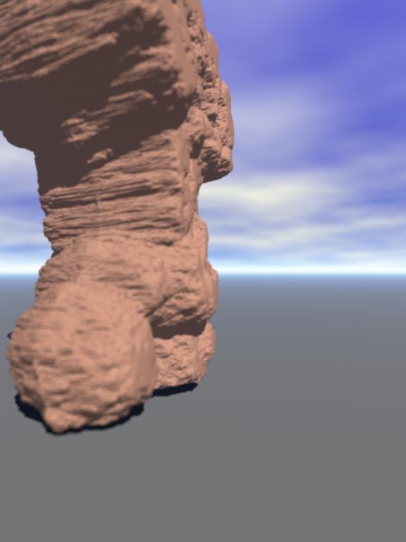 Below is a height map, a render of a rock with no texture on the left and a texture (turned) on the right, a view in TE and a render of a stone that turned out to be imported / exported to Wings, Sculptris and Bryce.
