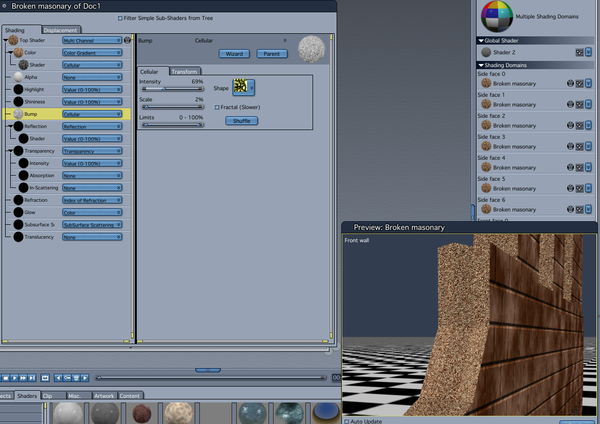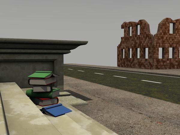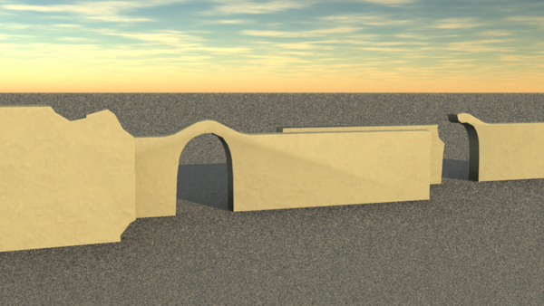 Here's a shot of some 'ruined' walls I was trying to model. I must have messed up the middle one because the shadows are revealing so weird geometry :) Did the cut outs with booleans, mostly because I'm having some fun with booleans and want to learn how to use them (it?) properly.