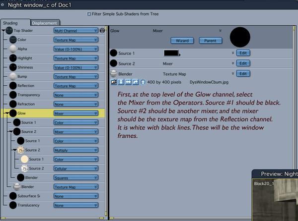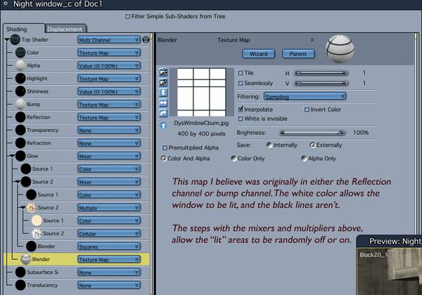 This mini-tutorial assumes you're using Dystopia City Blocks. If not, you may be able to substitute the Wires function for the image map to create window frames.