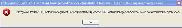 A problem I did find when attempting to remove the CMS service from "win XP pro 32", is when attempting to use the CMS uninstaller, I get error message that it is not a valid 32 bit application (see attached image):-
