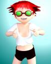 • Can we get some madcap (preferably red) hair and green goggles for her, a la Ed from Cowboy Bebop?  Just a thought.