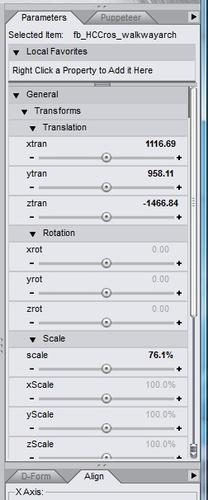 Since everything in HCC is parent to the bridge arch it is quite easy to select it and if you apply these translations it will fall into place. Then its just a question of removing or hiding the individual modular parts from the Waterfalls that are redundant. I then repositioned the mist planes and rotated them to face the camera.