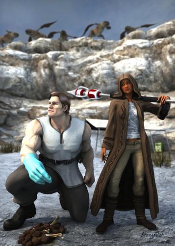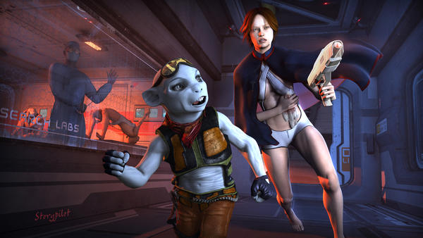 Here's my little series of Clancy and Sabra images so far, which I know some folks have seen before, but I'm going to go ahead and put them up here. I might be rendering some more images down the line featuring them. This is (briefly) the story so far.
