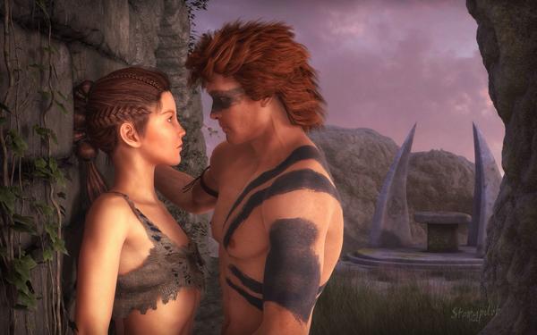 Thanks Novica - yes, I agree. I was smiling about this one, that here the guy was bustier than the girl. :) Often it feels like the choices on the girl morphs is between large and larger. I used the NPM's here to shrink her down. Also, yes, these are two of my favorite hairs too, both excellent.