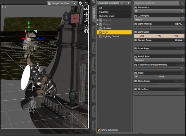 Lighting always fascinates me and I am so happy to learn about several unique (to me anyway) things that you did. One is using Advanced Ambient Light at 6%. I didn't think that would do anything at that low level. Using EasyVolume with the Advanced Spotlights- I haven't used EasyVolume and I love volumetric lights. I tried unsucessfully using the Advanced Spotlights for pointlights once (I think he said to set them at 360 degrees) and gave up doing much more experimenting after that.