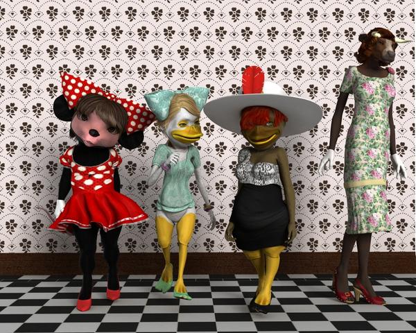 World famous opera star, Clara Cluck, with her entourage - Minnie Mouse, Daisy Duck and Clarabelle Cow.