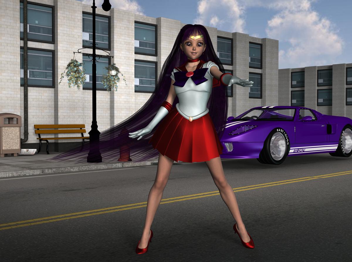 Here's a shot of Genesis 8 Female, using Amy Aimei's Sailor Mercury outfit with the Sailor Mars textures, Tofusan's Anime Head morph for Genesis 8 Female and Mars Hair by Realms of Savage. (and some tweaking)