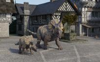 A family of triceratopses has escaped from the emperor’s zoo, in the city of Sirenopolis. They are currently wandering around the medieval quarter of the city, in search of a decent lunch.