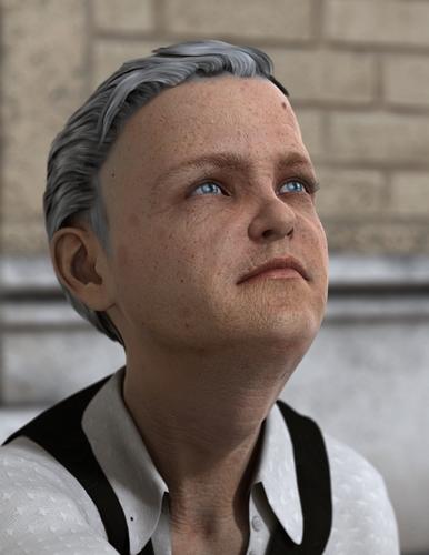 Edited to add: my concept behind the original image is that it represents an old man who is (metaphorically) experiencing a "second childhood" near the end of his days. Aside from the Zev0 products used, he's basic M5 with M5 Elite Dave skin. The young boy shown here uses Jesse for Justin skin.