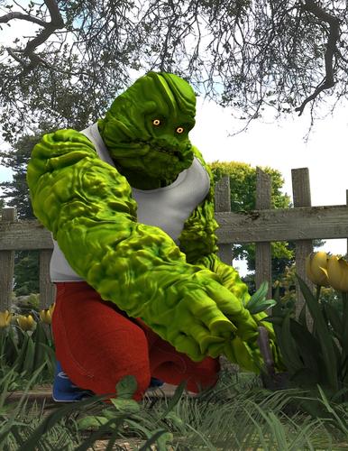 And with the wonders of Genesis 1, she can be a 5 year old girl one minute and a 5 year old male Muck the next! I'm not sure you can tell that Muck is young here, but I gave it a shot. I mixed Justin head in to help, but it didn't make much difference. So here is my little Mucklette pulling weeds.