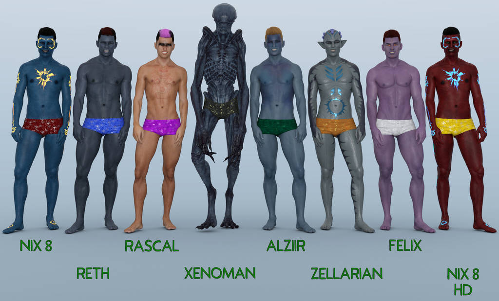 Here are my untouched Nix Renders. I went ahead and did Nix in the basic human colors (when available) and then the non-human colors for comparison purposes. You can see the large versions on my Deviant Art pages.