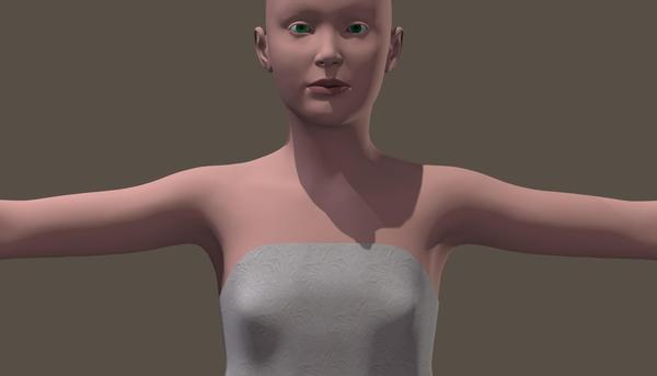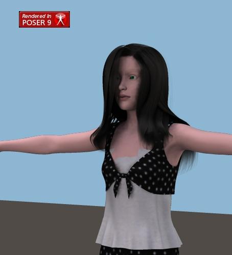 Here is Laura with her default texture. I still have issues with her white top. I will need to read about adding morphs to the top.