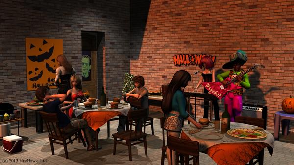 Cool scene. Party complete with live entertainment! Lots of stuff in this scene! Good job!