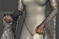 It looks like the dress is falling through her hands. But I do not know what could cause that: The dress is working fine for me.