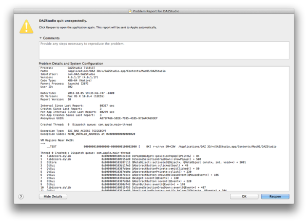 Yeah this release is crashing on my PC as well. So far, it crashing on me during autofit. Gen2 clothing fit on Genesis body and had some major hangs with rendering. If daz3d is starting to add SSS to their program, they should do something with their rendering software. Do multiple passes before final render. Also improve their communication with other rendering programs. Like Poserfusion for example. Been playing around with Cinema 4D (vray and indigo).