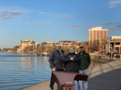 I paid homage to the Three Carrarateers. Was traveling through Wisconsin on a USRail Pass and stopped to visit a friend who works in Madison. Here is a view from the UW Madison student plaza across the water toward the governor's mansion. So much creativity still in the air from the Three Carrarateers.