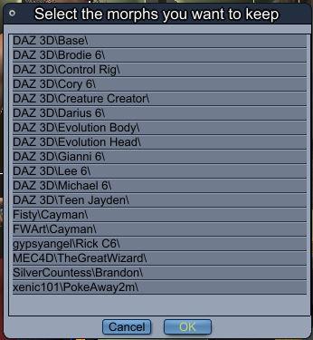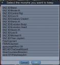 The next step is somewhat confusing.  The instructions are to select only the product morphs I want to save.  So, does that mean if i click on none of them, that they will all be deleted?  I've tried that before and it didn't seem to do anything.  For now, I click on Michael 6, and then say OK.  Very little file reduction happens.