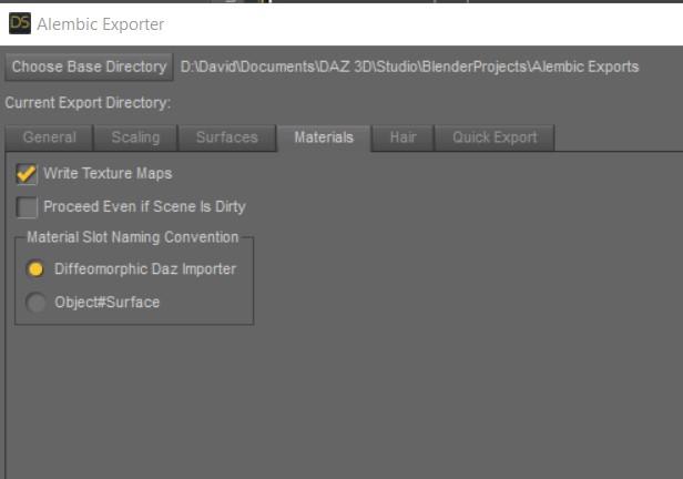 But materials are a different story. While 3DS Max could not in good faith say they support Alembic if it didn't preserve Daz Studio's surfaces, Alembic does not support materials at all, beyond that. This exporter leverages and automatically re-applies the materials converted by the excellent Diffeomorphic Daz Importer, but that, of course, is for Blender. I cannot take on an effort of such complexity and size as that; I'm not one of those more courageous (and more techically proficient with just understanding how materials work) guys here who have done exactly that :) With 3DS Max, there are no freshly converted materials lying around to just pick up and apply.